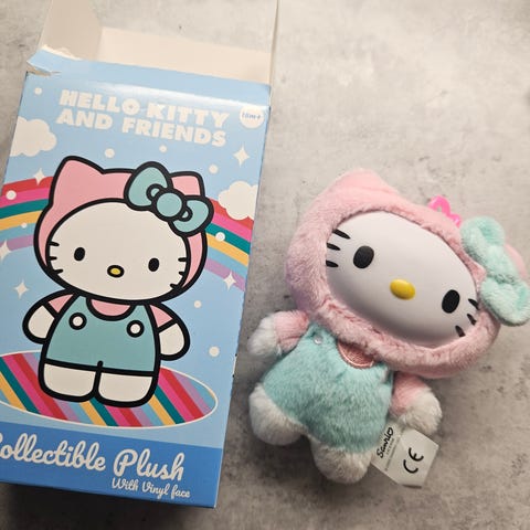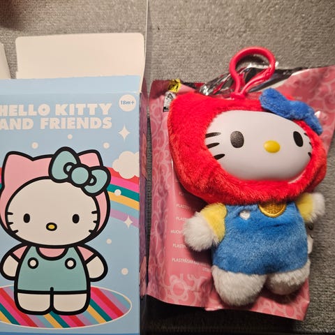 Myynnissä kuvassa näkyvä käyttämätön Hello Kitty pehmolelu, ainoastaan otettu alkuperäispakkauksesta kuvia varten.