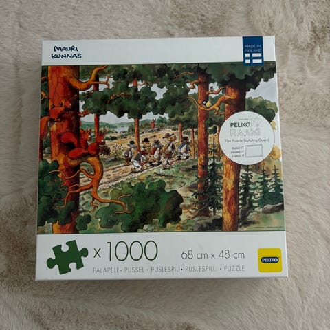 Pelikon 500 palan palapeli, jossa eri maalaisia postimerkkejä. Kaikki palat tallella ja pussitettu.