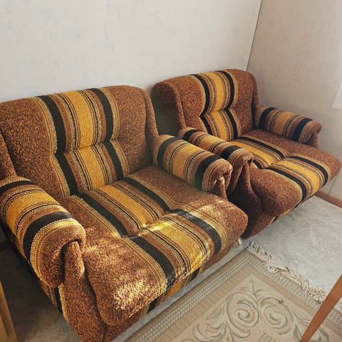 Myydään kaksi nojatuolia. Vanhat, mutta hyvässä kunnossa. Korkeus 84cm ja leveys 53cm.