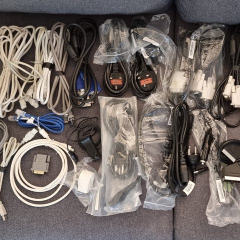 Erilaisia kaapeleita. Kysy lisätietoja.