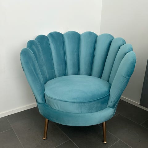Kaunis simpukka sohva, siistissä kunnossa. Ollut työhuoneessa eli vähällä käytöllä. Kevytrakenteinen, ohuet terävähköt jalat eli kannattaa pitää esim. maton päällä. Karvatassut vähintään.