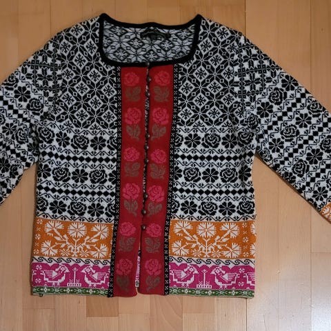 Myydään uusi Gudrun Sjöden-merkkinen pinkki neuletakki koko reilu M. Edessä nappi.