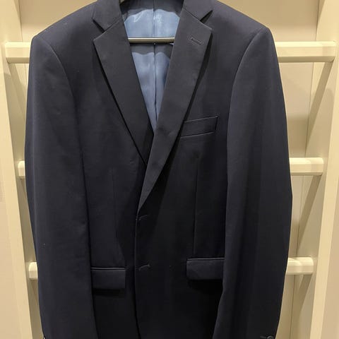 Myyntiin miesten puku. Hyvässä käyttökunnossa ja puhdas. Puvun takki kokoa 50L ja housut 33W 34L slim fit.