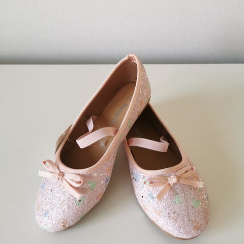 Uudet, käyttämättömät ballerinat. Pehmustettu pohja, joustava kantaosa, kimaltava pinta.