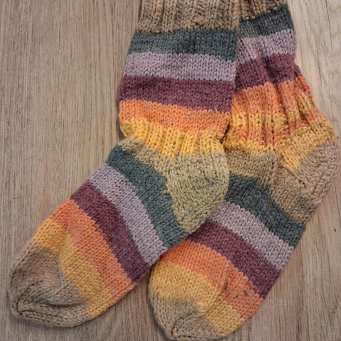 Villasukat, koko noin 30, sisämitta 16 cm. Valkeakoskella