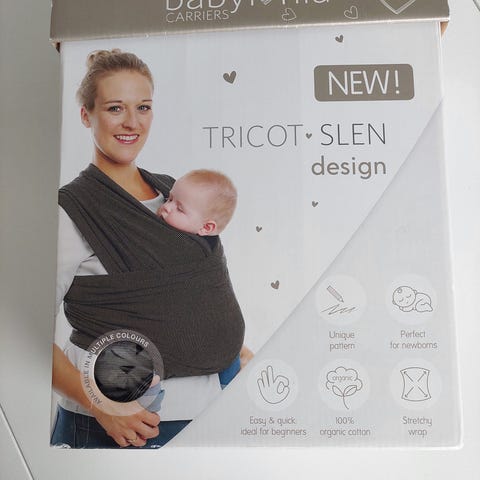 Pehmeä ja joustava trikookantoliina vauvan kantamiseen.
