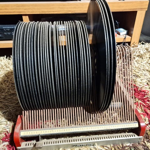 Savikiekkoja noin 65kpl. Muutama kotimainen, pääosin sekalaista ulkomaista kaikenlaista soittokuntoista. Tango, valssi, rumba, klassinen, jenkka, polkka jne jne.