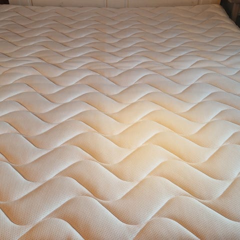 Toinen puoli silti edelleen hieman tummunut, kun ei ole petarin suojaa pidetty. Toinen puoli kuin uusi, kun patjaa ei ole käännetty käytön aikana.