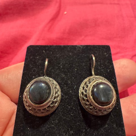 Kalevala Koru Kiviaarteistoa hopeinen filigraani sormus kivenä violetti ametisti. Koko 16.25 mm. Sekä kaksi riipusta. Riipukset ovat olleet alunperin korvakoruja, mutta niiden rinkulat on käännetty hopeasepällä niin, että niitä voi käyttää riipuksena kaulakorussa. Korvakoruina niitä voi käyttää, jos laittaa korvakorukoukun lisäksi toisen rinkulan niihin tai käännättää nykyiset rinkulat alkuperäiseen asentoon.
