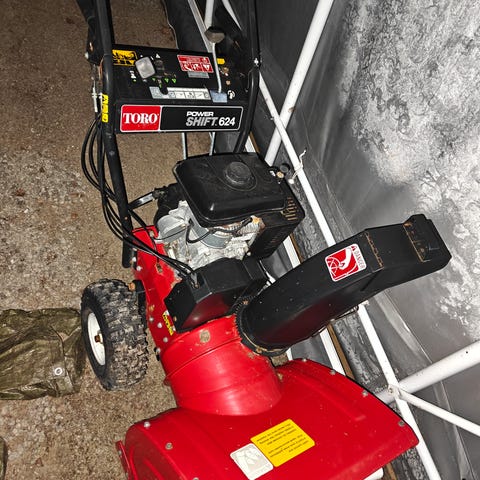 Lumilinko jossa renkaat tyhjät ja bensiini vuotaa yli kun avaa bensahanan. Lähtee käyntiin nykimällä, starttia ei ole.