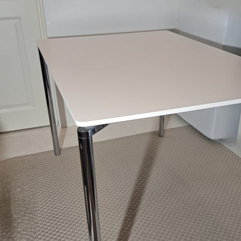Myydään tarpeettomaksi jäänyt Fritz Hansenin valmistama little friend- pöytä, valkoinen laminaatti - pinta, kiillotettu alumiini- jalka. Kannen halkaisija 45 cm, korkeus 60,5 cm. Kunto on täysin uudenveroinen, ei mitään käytön jälkiä.