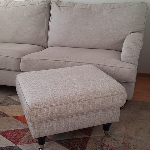 Myynnissä Howard Lyx sohvaryhmä. Ryhmään kuuluu 3:n istuttava sohva, 2:n istuttava sohva, nojatuoli ja rahi. Oxford Lyx on klassinen ja elegantti sohvaryhmä. Kalusteissa etujalat ovat tyylikkäät messinkipyörälliset. Ryhmään kuuluu muoviset lattiasuojat jotka suojaavat lattiaa. Kaarevat muodot ja paljon kauniita yksityiskohtia, ja niiden tarkkaan mietitty design antaa olohuoneelle ylellisen ja kutsuvan ilmeen. Ryhmän rungot ovat ehjät. Istuin ja selkätyynyjen kankaat ovat irrotettavissa pesuun. Ryhmä on ollut 2:n jo hieman varttuneemman ihmisen taloudessa uudehkossa omakotitalossa. Heillä ei ole pieniä lapsosia, eikä lemmikkieläimiä. Huomioitavaa sohvan kunnossa: Pesusta huolimatta uutta etsivä saattaa tietyssä valossa havaita käsinojien kankaassa, sekä rahin nurkissa pientä normi käytössä tullutta tummentumaa. Kyseinen tummentuma huomioitu hinnassa. Yleisilme todella siisti. Uuden vastaavan tarjoushinta: 2999,99€ ilman rahia. Meidän hinta: 1239€. Hinta tiputettu. Alennettu hinta: 1079€. HUOM: NOJATUOLISSA EDESTÄ KATSOTTUNA VASEMMASSA KÄSINOJASSA NÄKYVÄ VALKOINEN KOHTA EI OLE VIRHE / REIKÄ VAAN PIENI VANUNPALANEN / ROSKA:)