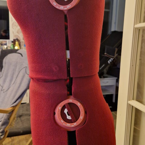 Musta vaate- tai ompelunukke, jossa on metallinen jalusta. Sopii esimerkiksi vaatteiden sovitukseen, ompeluun ja vaatteiden esillepanoon.