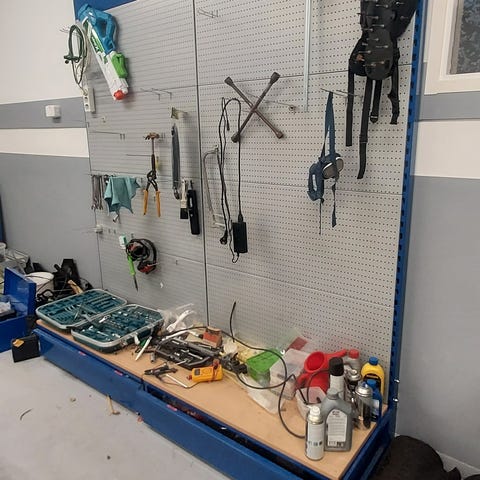 Omilla jaloillaan seisova työkaluseinä