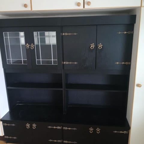 Kaunis ja vähän rustiikkinen tai sen tyylinen vitriini, kaappi tai kirjahylly.