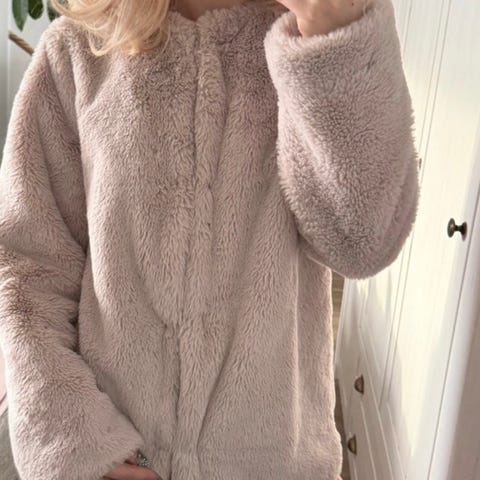 tekoturkistakki naisille koossa M. Takki on beigeä sävyä ja valmistettu pehmeästä tekoturkiksesta, sisäpuolella sileä vuori. Malli sopii arki- ja juhlakäyttöön viileämpiin säihin. Neutraali väri on helppo yhdistää erilaisiin asukokonaisuuksiin.