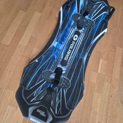 Snow Bow pulkkalauta talviliukumiseen. Laudassa on kahvat käsille ja muotoiltu istuin- tai makuualusta. Yläpuoli on musta ja kuvioitu, ja siinä on vihreä-sinivalkoinen Snow Bow -teksti. Alapuoli on sininen, liukupinta muovia. Soveltuu mäenlaskuun lumella lapsille tai aikuisille valmistajan ohjeiden mukaan.