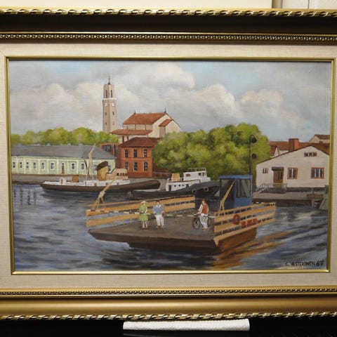 Puiston Reunassa Turku Puolalanpuisto öljyvärimaalaus kullattu kehys