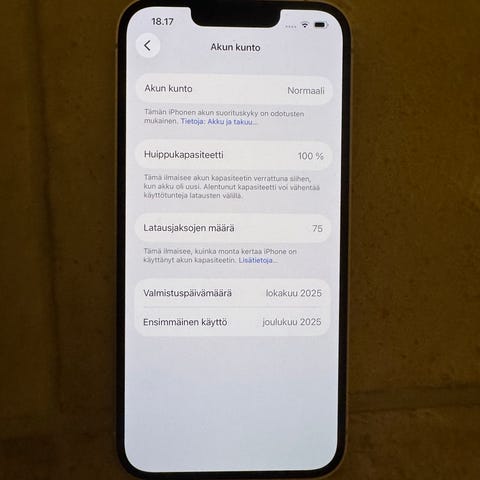 Myydään torista ostettu iphone 16 pro. Ei ole ollut itsellä käytössä ollenkan. Jotain häikkää on mutta toimintojen pitäisi toimia täysin. Akun kapasiteetti 89%.