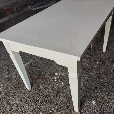 Pöydän sävy on vaalea hieman beigeen taittuva, jossa roosahtava vivahde.