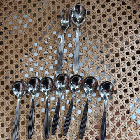 Hacmannin vanhaa sarjaa kastike kauha noin 25cm. Naarmuja löytyy jonku verran jotka näkyy kuvista.