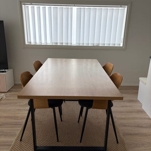 Maskusta muutama vuosi sitten ostettu ruokapöytä ja tuolit.