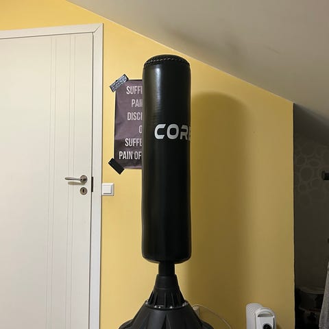 Musta 36 kg nyrkkeilysäkki kotiharjoitteluun tai salikäyttöön. Säkki ripustetaan kattoon tai telineeseen yläosassa olevien kiinnitysjousen ja kattokiinnikkeen avulla. Sopii nyrkkeilyyn, potkunyrkkeilyyn ja muihin kamppailulajeihin lyönti- ja potkutekniikoiden harjoitteluun.