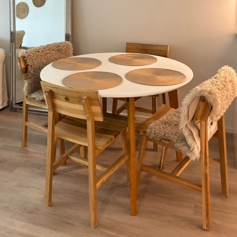 Hakusanat: huonekalu, huonekalut, moderni retro, käytetyt huonekalut, pyöreä, pöytä, pöydät, sisustus, keittiö, keittiöpöytä, ruoka, ruokailu, taso, keittiön, valkoinen