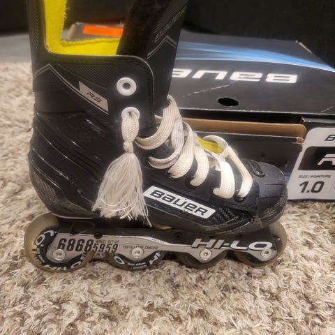 Bauer XR400 rullaluistimet lapselle, koko EU 33,5 (US 2, UK 1,5). Käytön jälkiä, mutta toimivat moitteettomasti, laakerit hyvässä kunnossa ja renkaissa kulutuspintaa vielä jäljellä. Neljän renkaan Hi-Lo-alusta, jossa kaksi erikokoista rengasta tukevat rullausta. Perinteinen nauhakiinnitys. Soveltuvat rullaluisteluun ja rullakiekkoon.