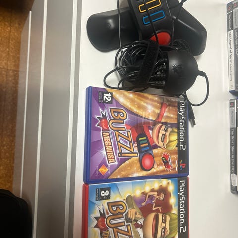 Myydään kuvan PS2 - PlayStation 2 Buzz! -pelejä. Hinta ilmoitettu jokaisen pelin perässä: