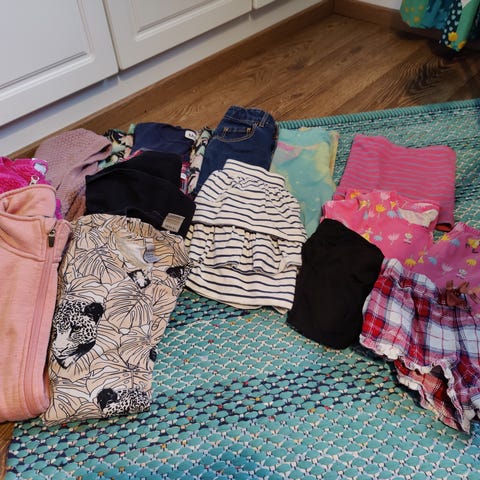 Yhden tytön käytössä olleet vaatteet. Kokoa 128 muutamia 134 kokoa voi olla mukana. Housuja 10kpl pitkähihaisia paitoja 3 kpl t-paitoja/toppeja 6kpl kahdet pikinit ja kahdet perus sukkahousut. Meillä ei tupakoida eikä meillä ole lemmikkejä. Kaikki vaatteet ovat ehyitä. Haku korkalovaara. Paketin hinta edullinen 20€