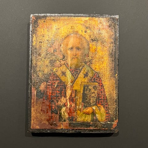 Kivinen obeliskipatsas korkeus 20cm. Kärjen yhdeltä sivulta murtunut pieni pala