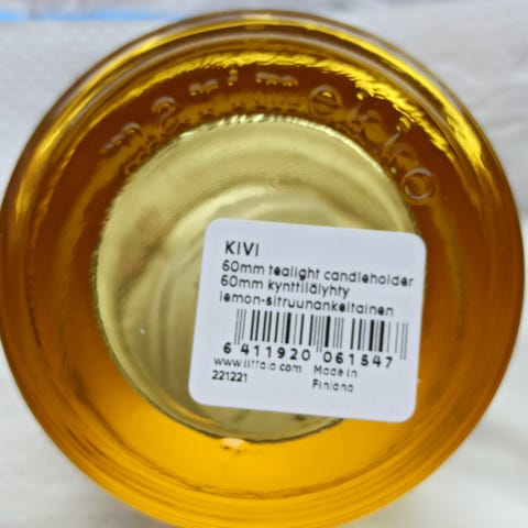 Heikki Orvolan Iittalalle / Marimekolle suunnittelema sitruunankeltainen Kivi kynttilälyhty, 2 kpl, uudet. Väri oli tuotannossa v. 2013-2024,ei tuotannossa nyt. Lyhdyn korkeus on 60 mm ja sen pohjassa on Marimekko-stanssi sekä muottinumero. Lyhdyssä on i-tarra. Toisen Kivituikun pohjassa on pieni ilmakupla, se ei estä sen käyttöä tai käyttöikää, mutta se tekee siitä uniikin. Tämä tieto löytyi Iittalalta. Nouto tai postitus, postimaksu ostajalle.