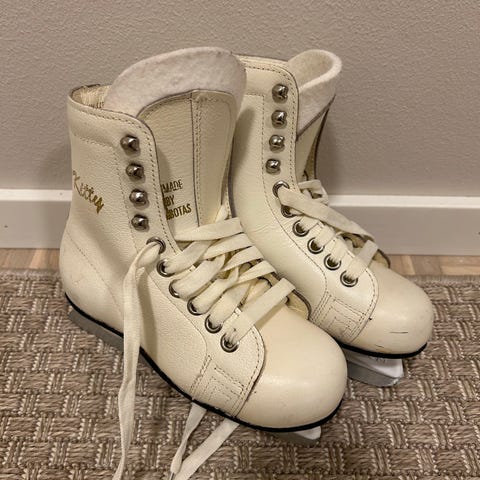 Emmi lasten taitoluistimet, koko 28. Väri valkoinen. Luistimissa on nauhakiinnitys ja turkisvuorattu varsi, joka tuo lisälämpöä ja mukavuutta. Terät soveltuvat yleiseen luisteluun ja taitoluistelun alkeisiin. Sopivat lapselle, jonka kengänkoko on noin 28 ja joka tarvitsee tukevat luistimet ulkojäille tai luistelukouluun.