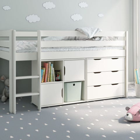 Joa parvisänky pöydällä ja hyllyillä