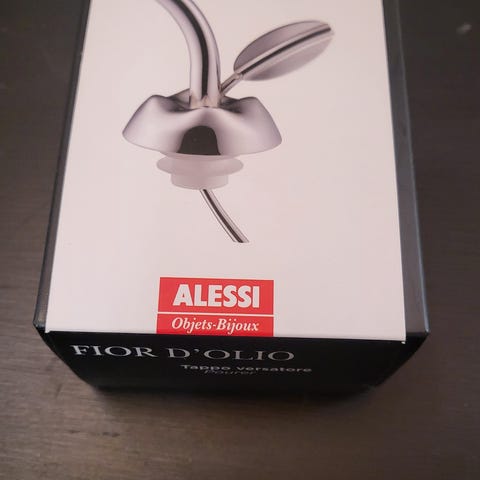 Alessi MSA32 öljypullon kaadin. Soveltuu öljypulloon kaatokorkiksi. Valmistettu ruostumattomasta teräksestä ja termoplastisesta hartsista. Mitat noin 5,8 x 4 cm. Muotoilu Marta Sansoni. Sopii öljyn annosteluun ja kaatamiseen suoraan pullosta. Tuote on uusi ja avaamaton.