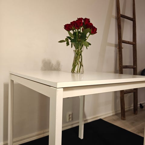 Myydään siistikuntoinen ruokapöytä IKEA MELTORP. Koko 125 x 75cm (korkeus 74cm). Valkoinen metallirunko. Jalat irrotettu pöydästä, kun viety varastoon. Ei varauksia.