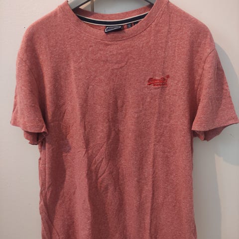 Superdry t-paita miehille. Koko XL. Väri vaaleanpunainen. Edessä pieni kirjailtu Superdry-logo rinnan kohdalla. Pyöreä pääntie ja lyhyet hihat. Materiaalitietoja ei ole saatavilla, mutta paita on tyypillinen arkeen sopiva miesten t-paita.
