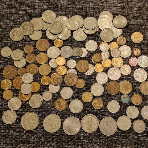 Erä pääsääntöisesti neuvostoliiton kolikoita. Joukossa myös muita, kuten keskuspankin muistokolikko 1962 ja Viron kruunuja.