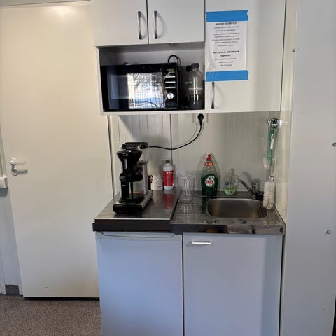 Minikeittiö,, jonkin verran käytön jälkiä, purettu liiketilan takahuoneesta. Hana mukana, vaatii ehkä tiivisteiden vaihdon. Mitat 1100/60 cm. Cylinda merkkinen.