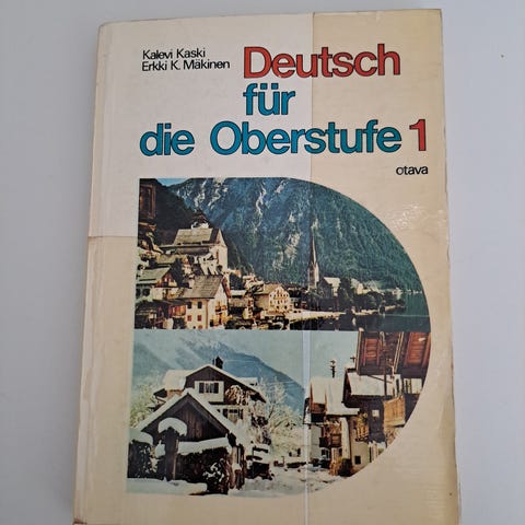 Saksan kielen alkeisoppikirja ja kielioppi ja harjoitukset -kirja aikuisille. Osa tehtävistä tehty lyijykynällä. Yht. 6 e.