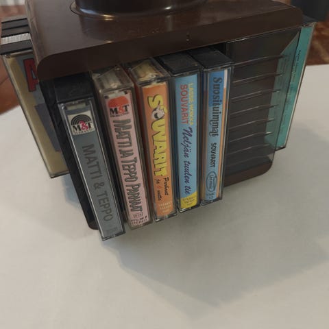 Kuvien mukaisia vanhoja c-kasetteja + telineet.