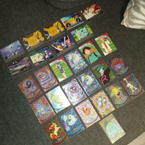 Myydään kuvassa näkyvät 34 Pokemon TOPPS trading card series 2 korttia. Kortit ovat hyvässä kunnossa, muutaman kortin kulmissa on pientä kulumaa. Pyydä tarkempia kuvia yksittäisistä korteista.