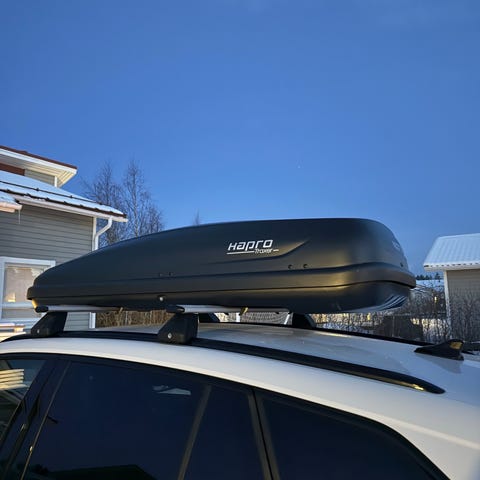 Musta Thule kattoboksi. Kattokaiteisiin kiinnitettävä makli. Ollut viimeksi MB 350GLE autossa. Myydään tarpeettomana.