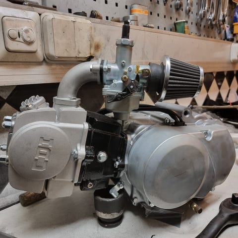 Siitä vain 5h ajettu lifan,aivankuin uusi toimii täydellisesti,mukaan kytkinvaijeri,alkuperäinen kaasutin,sähköt ja magneetonkoppa.vähän on tinkimisen varaa jo on hyvät syyt.