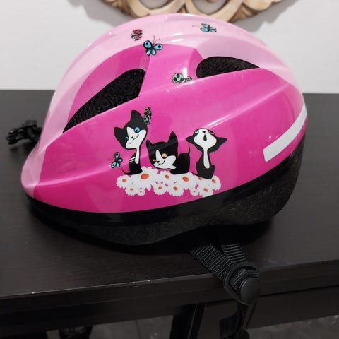 Bell lasten pyöräilykypärä, jossa harmaa monisävyinen dinosauruskuviointi. Kunto hyvä. Sisällä säilytetty.