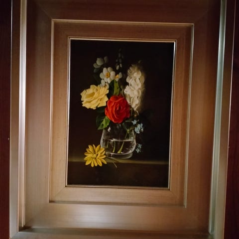 Tässä hienostuneessa teoksessa on kauniisti tyylitelty kukka, joka on käsin leikattu savutammesta ja koivuviilusta. Tammen syvien, tummien sävyjen ja koivun luonnollisten vaaleiden sävyjen kontrasti luo harmonisen kokonaisuuden. Tämä ainutlaatuinen taideteos sopii täydellisesti tuomaan seinälle eleganssia ja lämpöä sekä korostaa luonnonmateriaalien kauneutta ja taitavaa käsityötä.