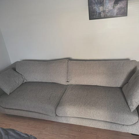 Kolmen istuttava tumman harmaa sohva. Muuten hyvässä kunnossa, mutta istuintyynyt hieman painunut käytössä.