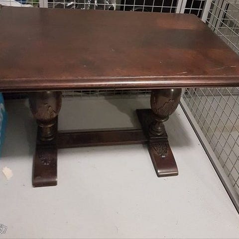 Upea pöytä, tukeva ja painava. Upeat kaiverrukset ja koristejalat. Pöydän päällinen on hieman huonossa kunnossa. Tarvisi hionnan ja lakan. Kaunis juuri noinkin.