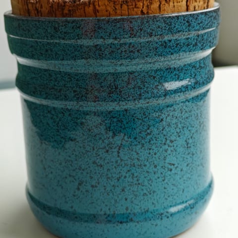 Upea sininen, eläväpintainen lasite ja terrakottareunus – sopii sekä käyttöön että sisustukseen.